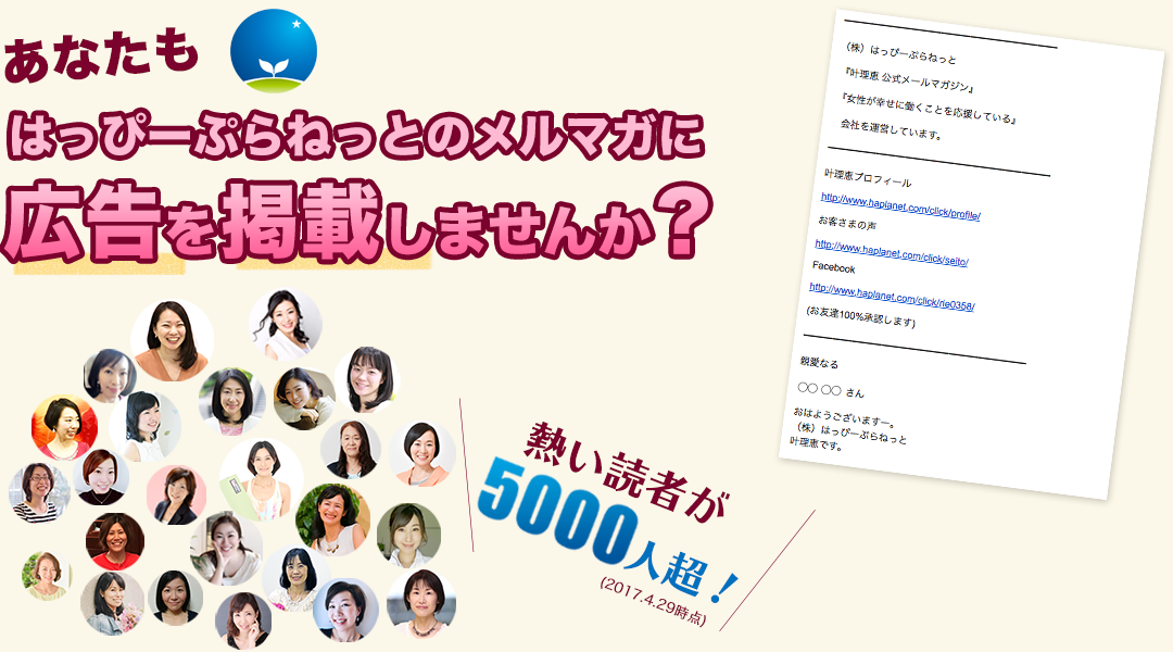 起業系メルマガで熱い女性の読者(サロンオーナー、セミナー講師等おひとりさま起業家や、専業主婦、OLさん等が読者の中心層となっております)を持つ